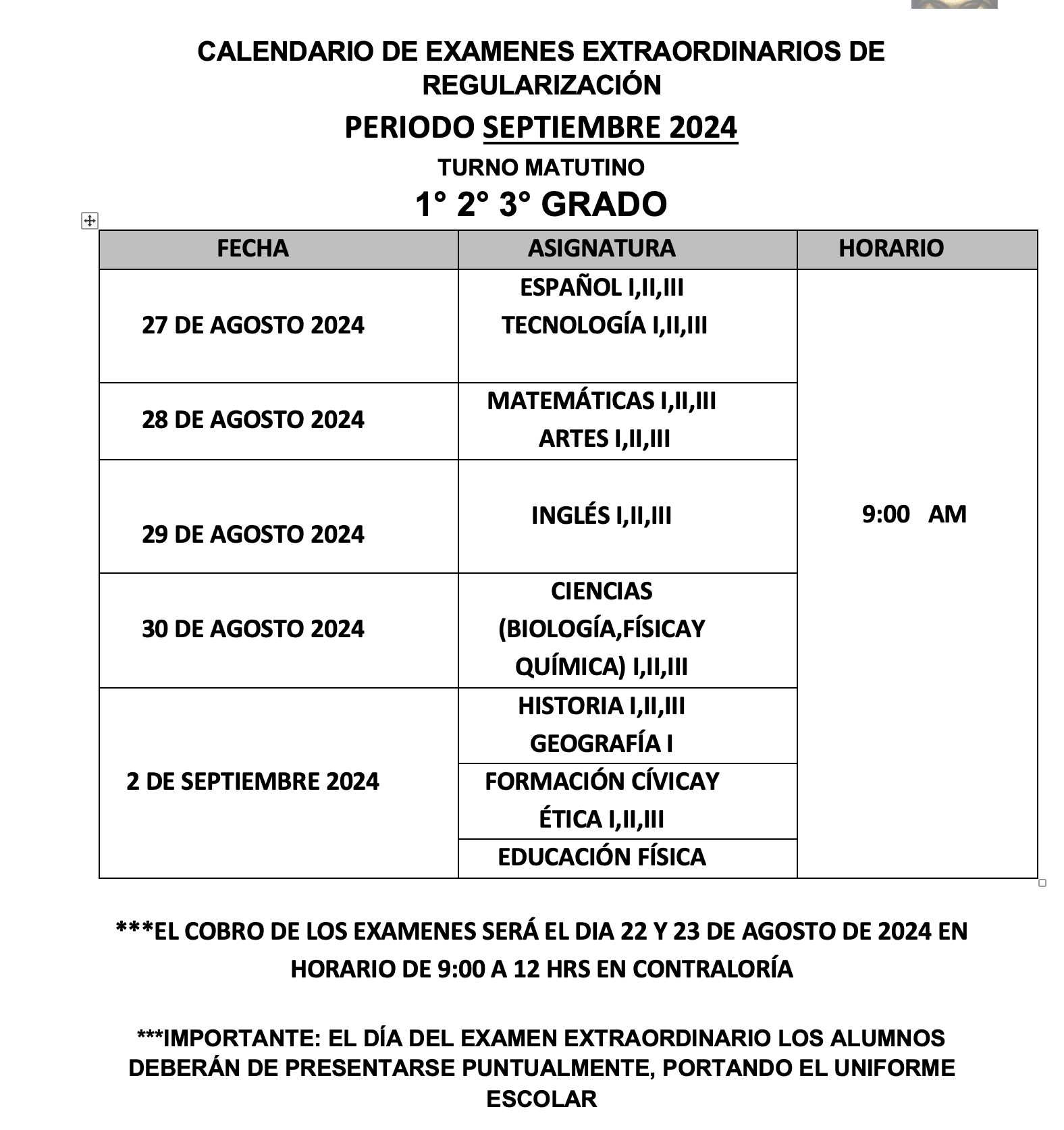 CALENDARIZACIÓN DE EXÁMENES EXTRAORDINARIOS DE REGULARIZACIÓN